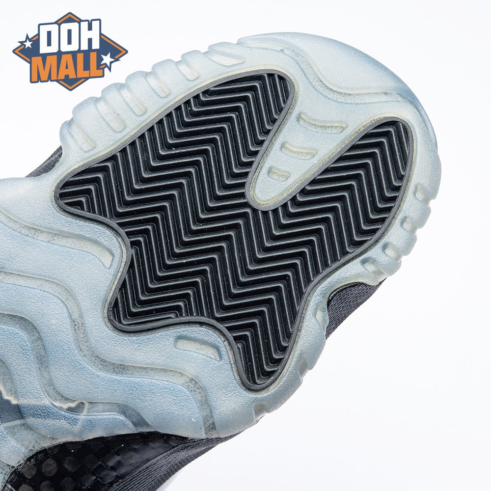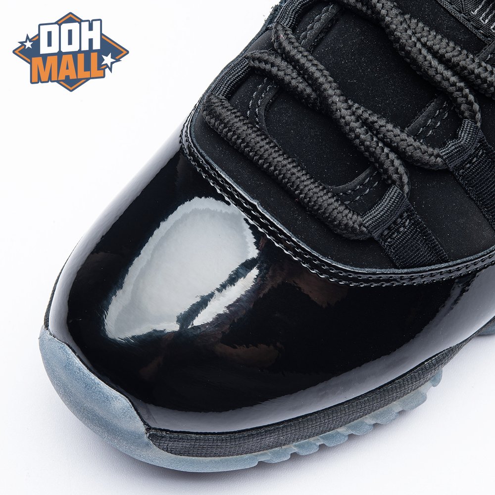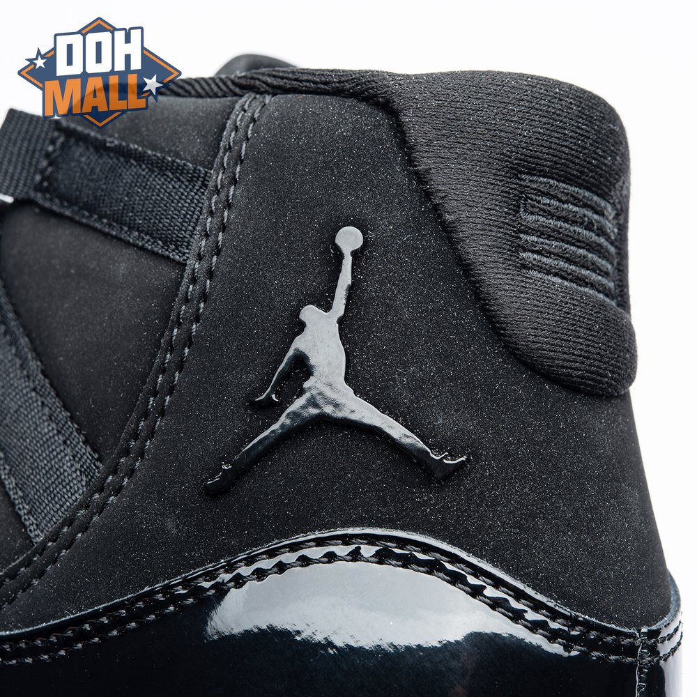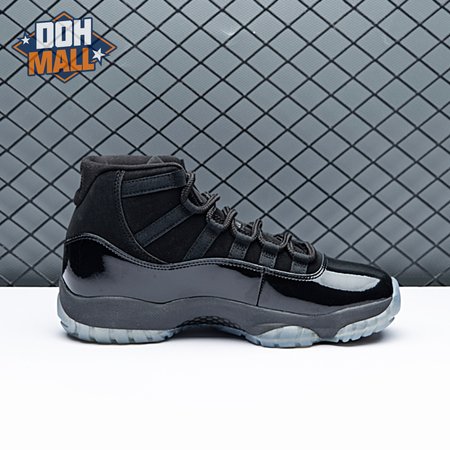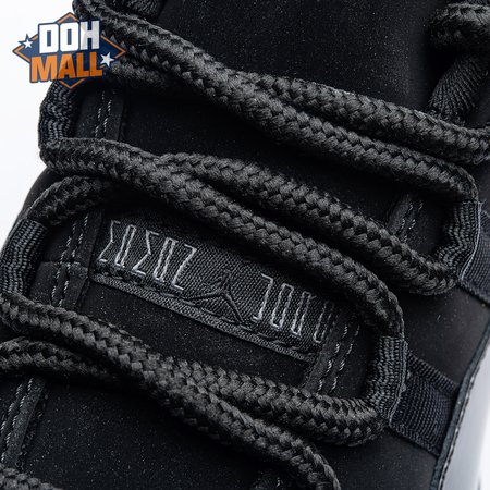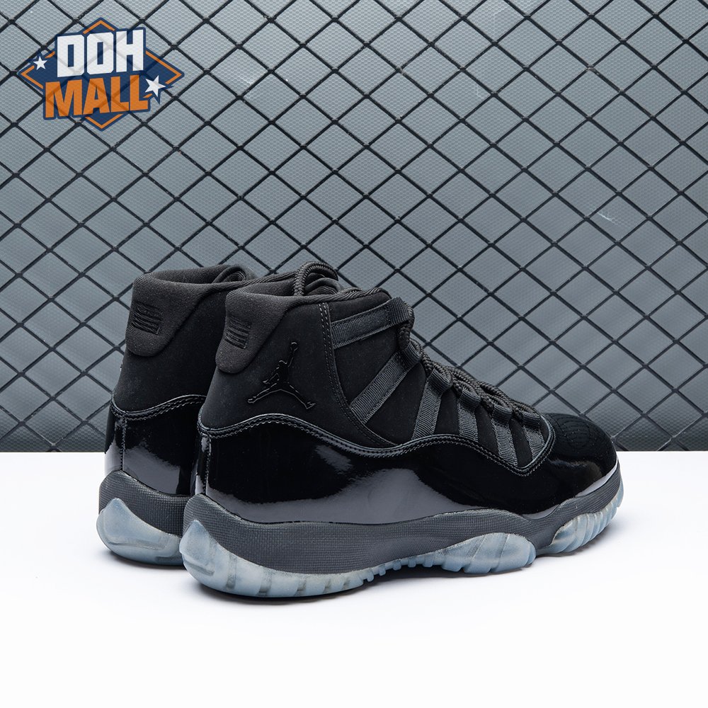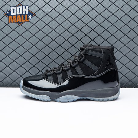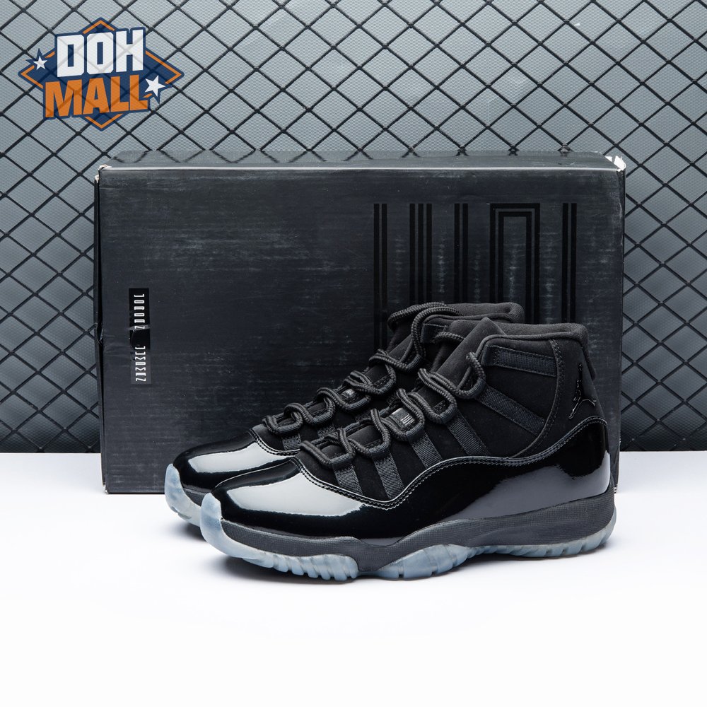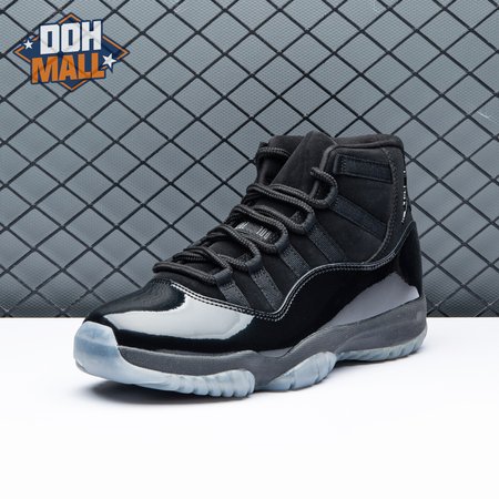 First teased in 2011 as a sample from the Air Jordan Blackout Collection, the Air Jordan 11 Retro 'Cap and Gown' was finally made available to the public in 2018. The name refers its formal look, designed to be worn for occasions such as graduation ceremonies"its laces are even inspired by graduation cords. The all-black model features a patent leather and premium nubuck upper atop an icy blue outsole.