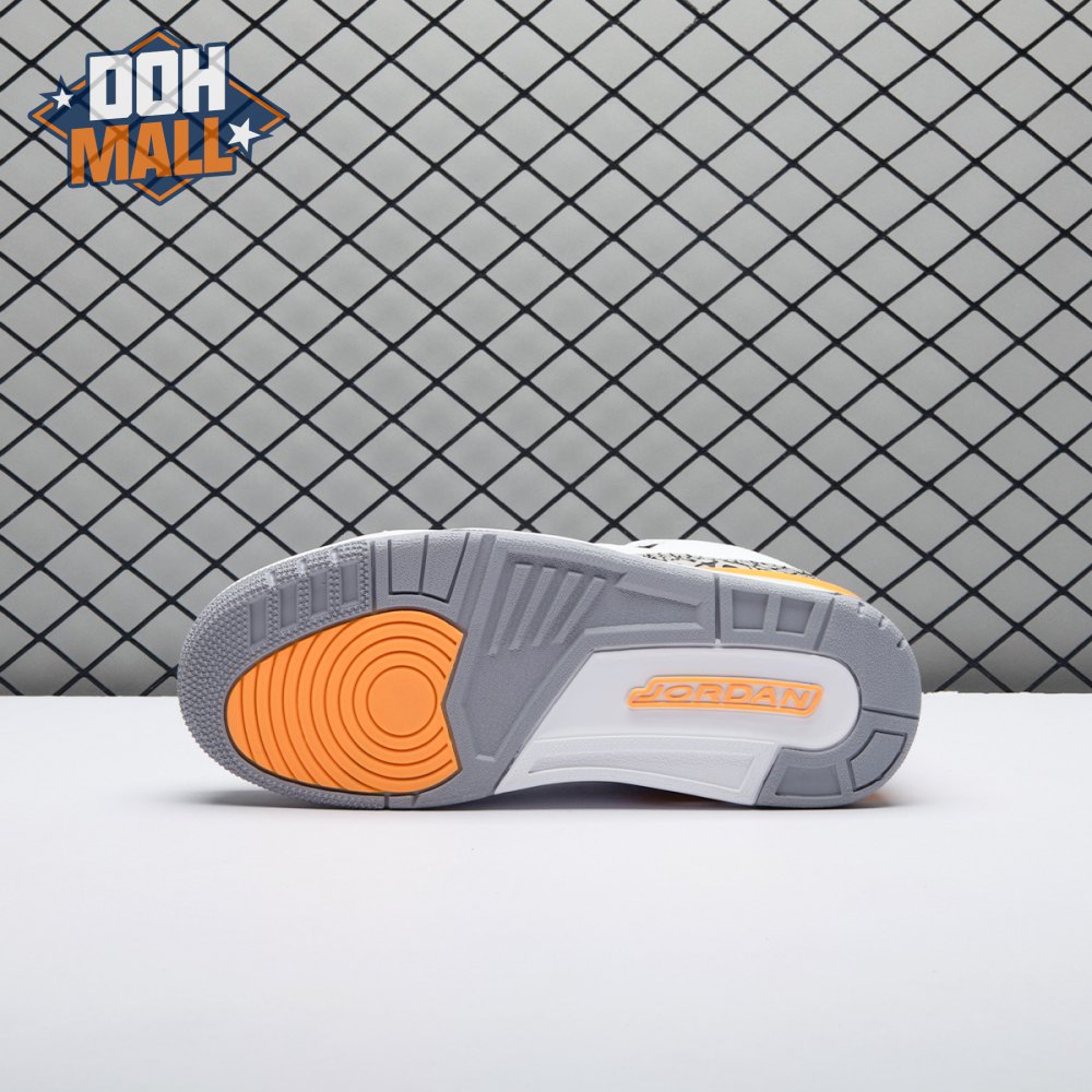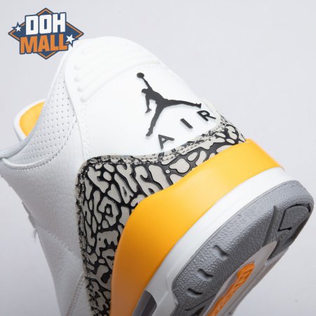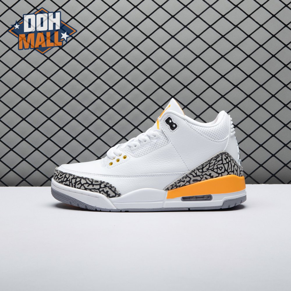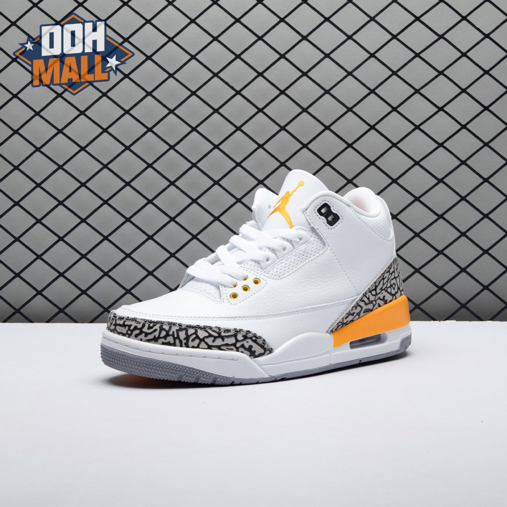 The women"s Air Jordan 3 Retro "Laser Orange" features an OG-inspired look, highlighted by a single pop of color on an otherwise neutral design. The AJ3"s signature elephant print overlays reinforce a white tumbled leather upper, marked with embossed Jumpman branding on the molded heel panel. A second Jumpman icon adorns the tongue in Laser Orange embroidery, matching the sneaker"s midsole wedge and lower eyelets.