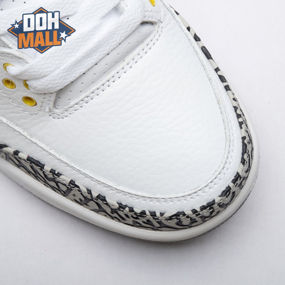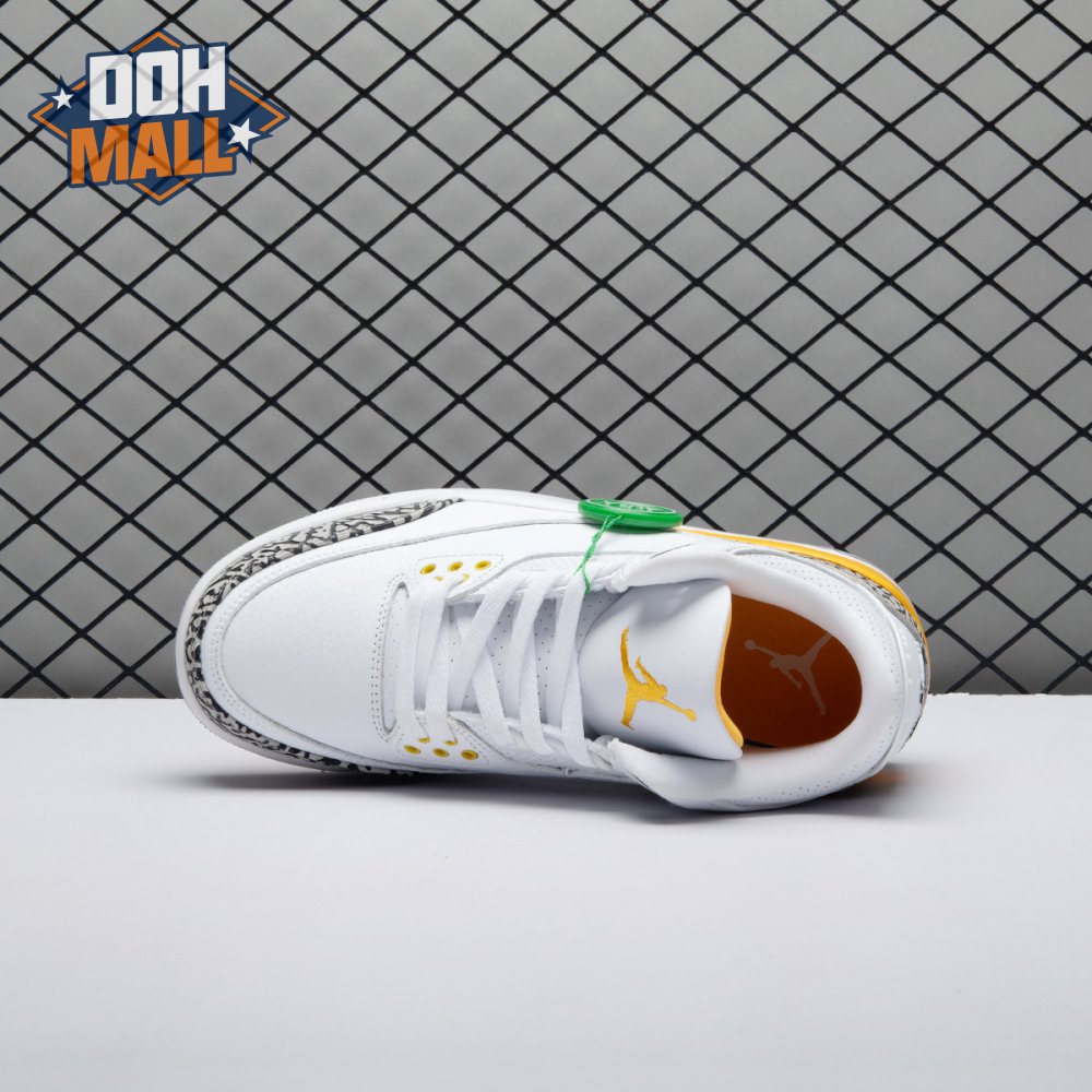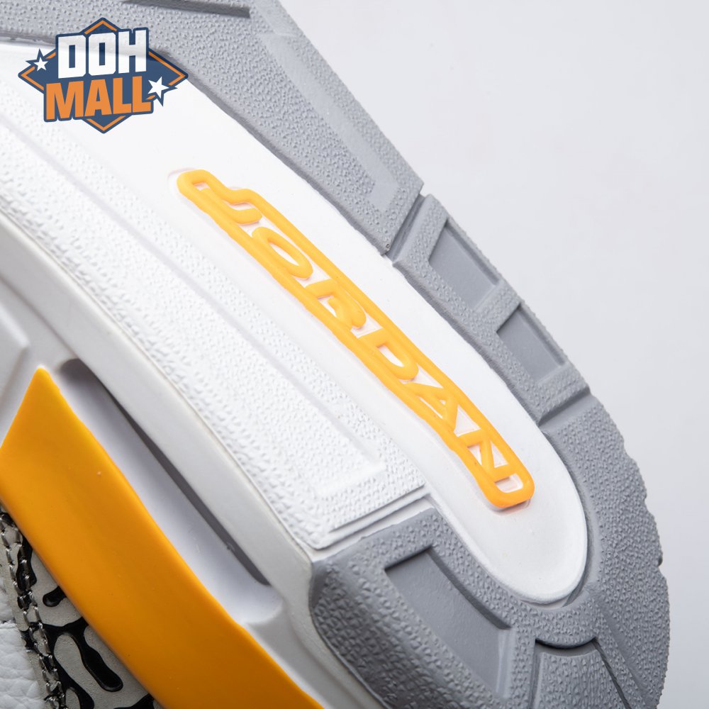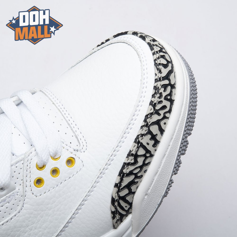 The women"s Air Jordan 3 Retro "Laser Orange" features an OG-inspired look, highlighted by a single pop of color on an otherwise neutral design. The AJ3"s signature elephant print overlays reinforce a white tumbled leather upper, marked with embossed Jumpman branding on the molded heel panel. A second Jumpman icon adorns the tongue in Laser Orange embroidery, matching the sneaker"s midsole wedge and lower eyelets.