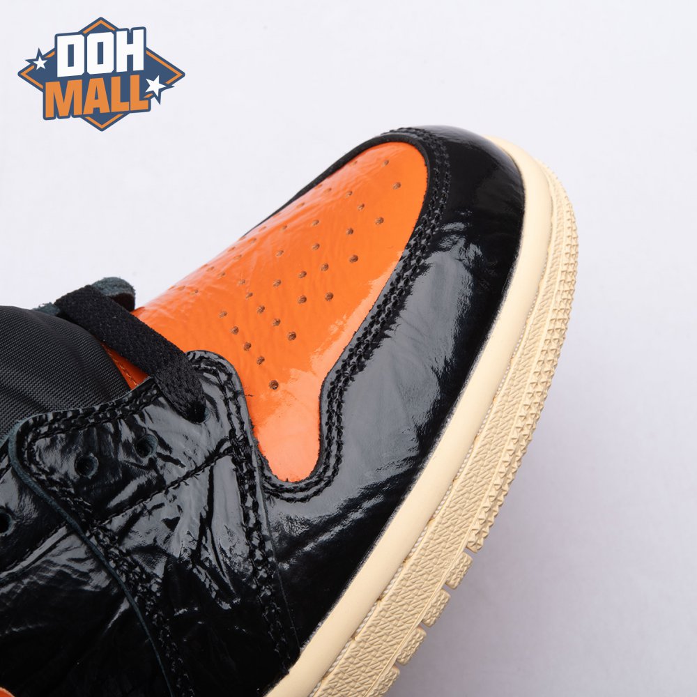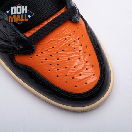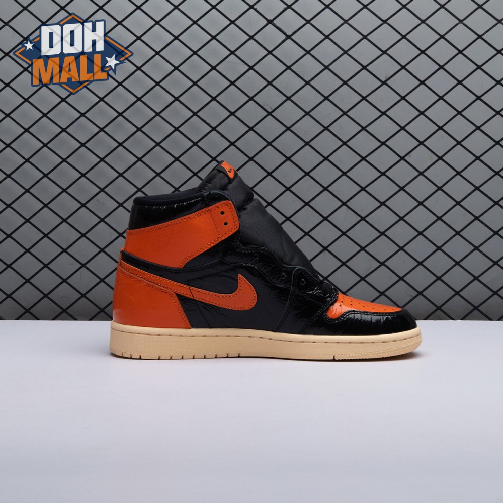 The Air Jordan 1 Retro High OG 'Shattered Backboard 3.0' revisits a coveted colorway inspired by a Michael Jordan backboard-breaking dunk that took place during a 1985 Nike exhibition game. The shoe's colorway of black, Pale Vanilla and Starfish matches the colors of the jersey MJ sported that day. Released in October 2019, this third edition of the sneaker features a crinkled, glossy patent leather upper that alludes to the hoop's broken glass, a fitting tribute to an early iconic moment.