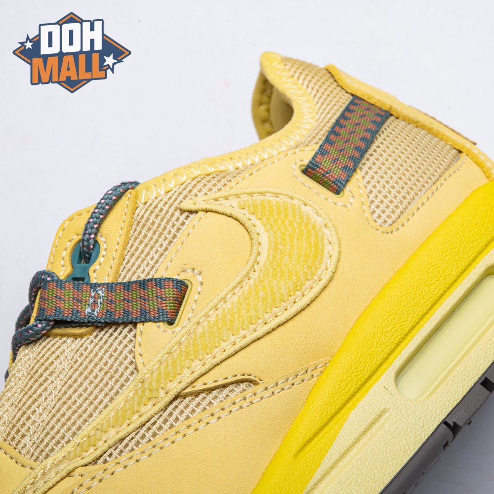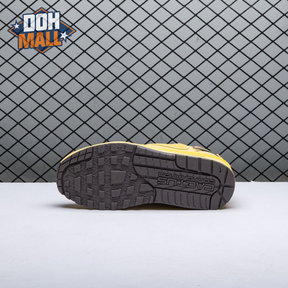 The Travis Scott x Air Force 1 Low 'Cactus Jack' is a unique creation featuring the rapper's trademark utilitarian cues. Released in November 2019, this edition has printed canvas, leather and suede uppers with zipped corduroy lace shrouds and different colored Swooshes on the sides. The sneaker rests atop a classic AF1 midsole and gum rubber outsole.